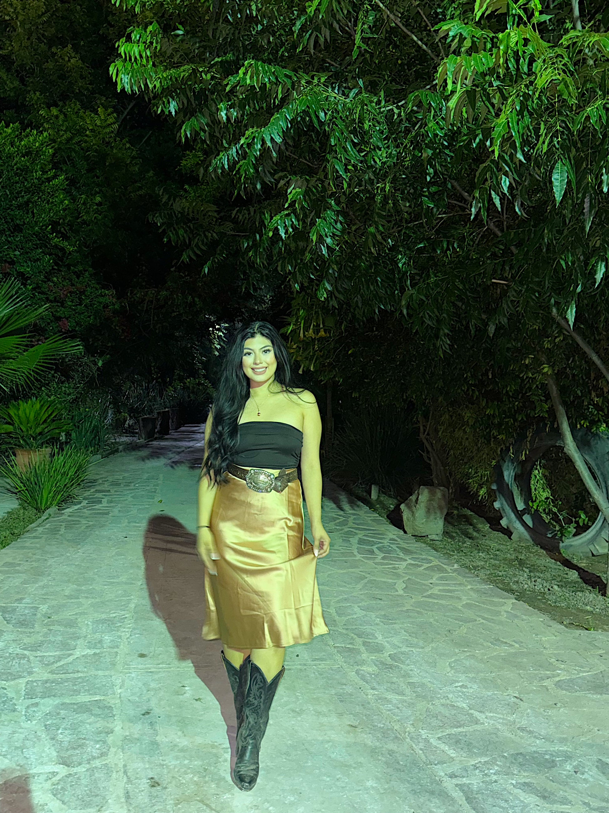 Satin Champagne midi Skirt